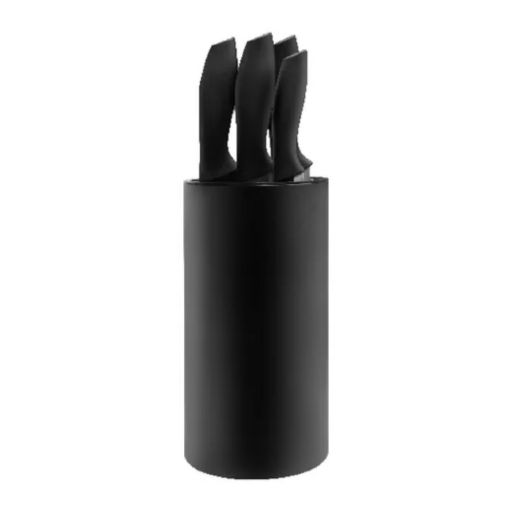 SET DE 4 CUCHILLOS LINEA BASIC INOX C/ANTIADHERENTE NEGRO Y HOLDER