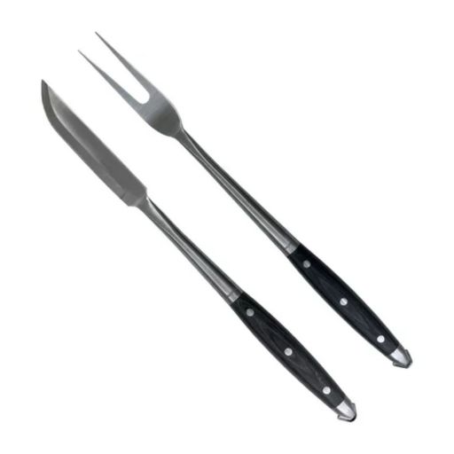 SET DE CUCHILLO LÍNEA BBQ 8" CON TENEDOR TIPO TRINCHA MANGO MADERA