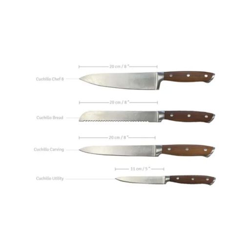 SET DE 4 CUCHILLOS LÍNEA COUNTRY INOX. MANGO MADERA